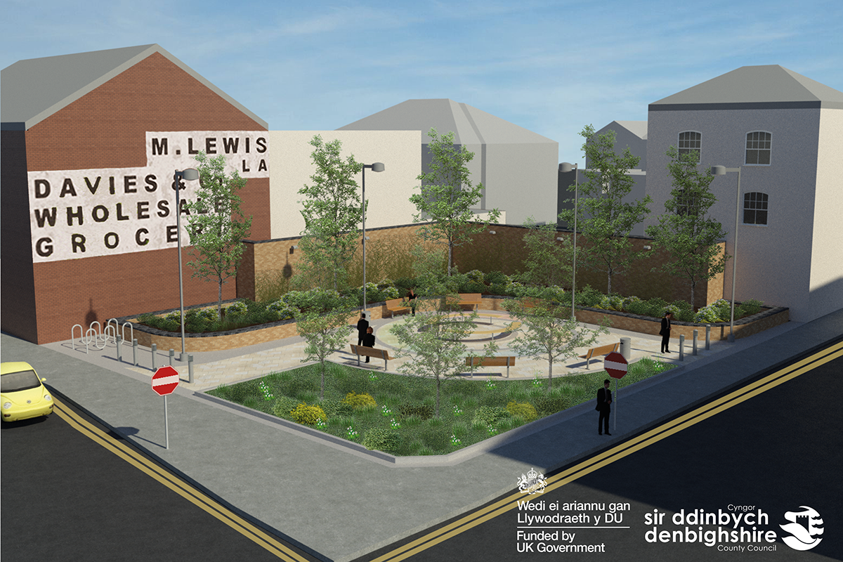 Gobeithiwn y gallwn gynorthwyo i ddod â mannau croesawgar, naturiol, yn ôl i Ganol Tref y Rhyl drwy greu parc poced ar safle’r adeiladau sydd wedi eu dymchwel.